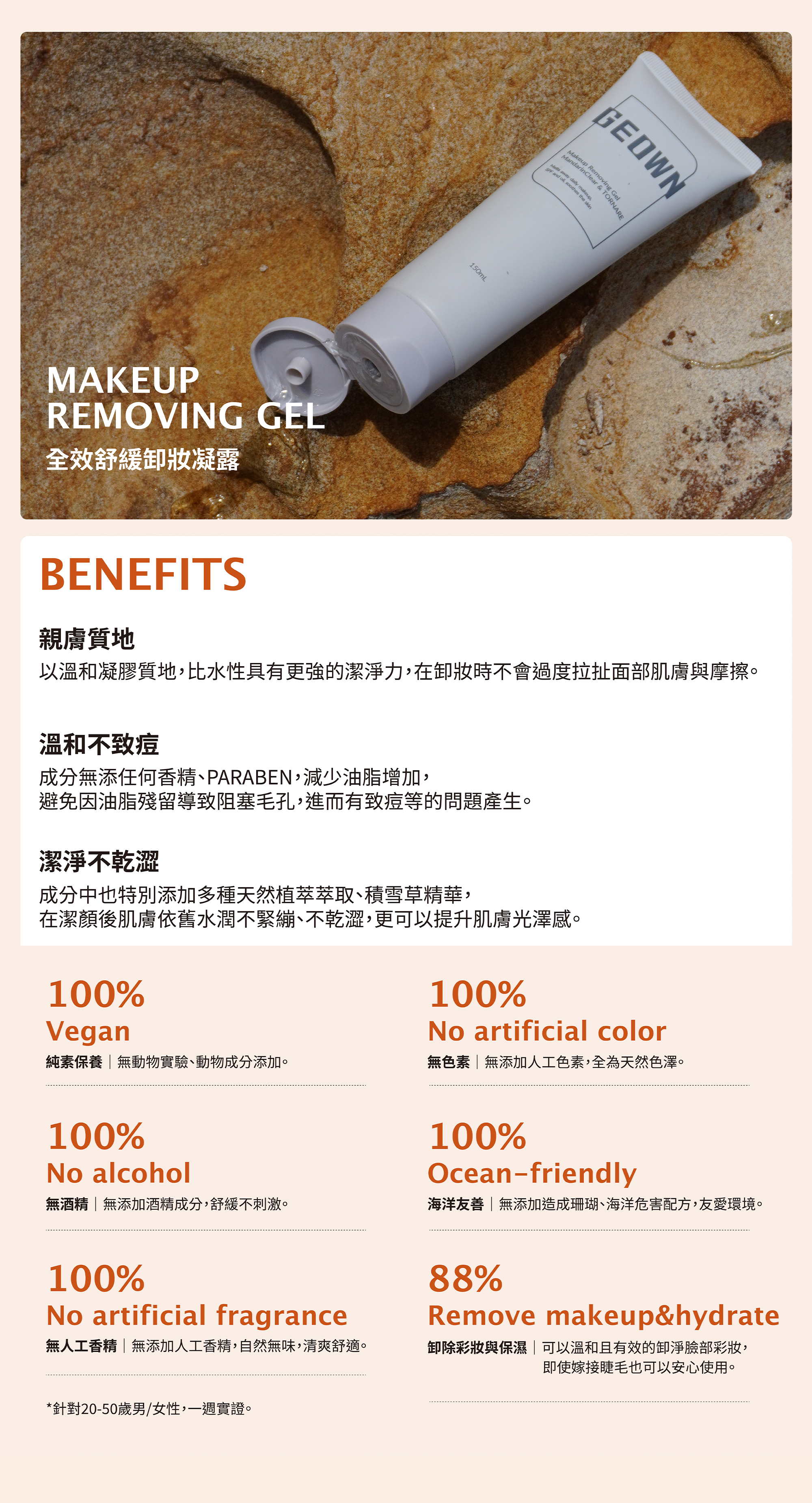 ・溫和卸除臉上彩妝及髒汙。